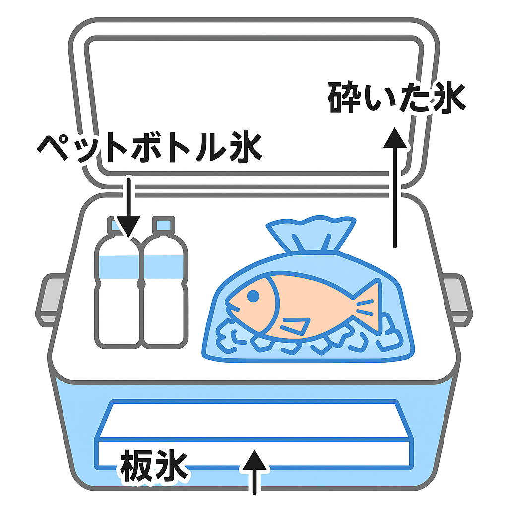 👉 図解①:クーラーボックス内の氷配置図