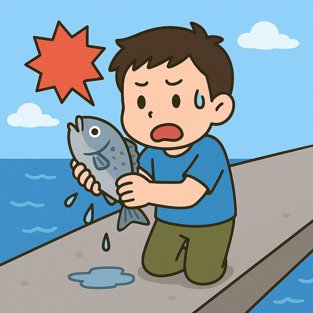 釣った魚をそのまま放置すると、弱って味も落ちます。中には針を外そうとして手をケガするケースも。