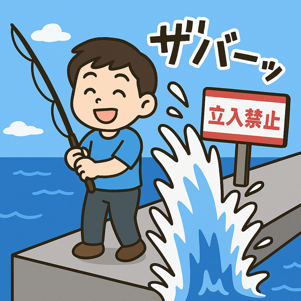 立入禁止の堤防や波をかぶる磯に行くのは自殺行為。SNSで釣果を見て真似する初心者も多いですが非常に危険です。